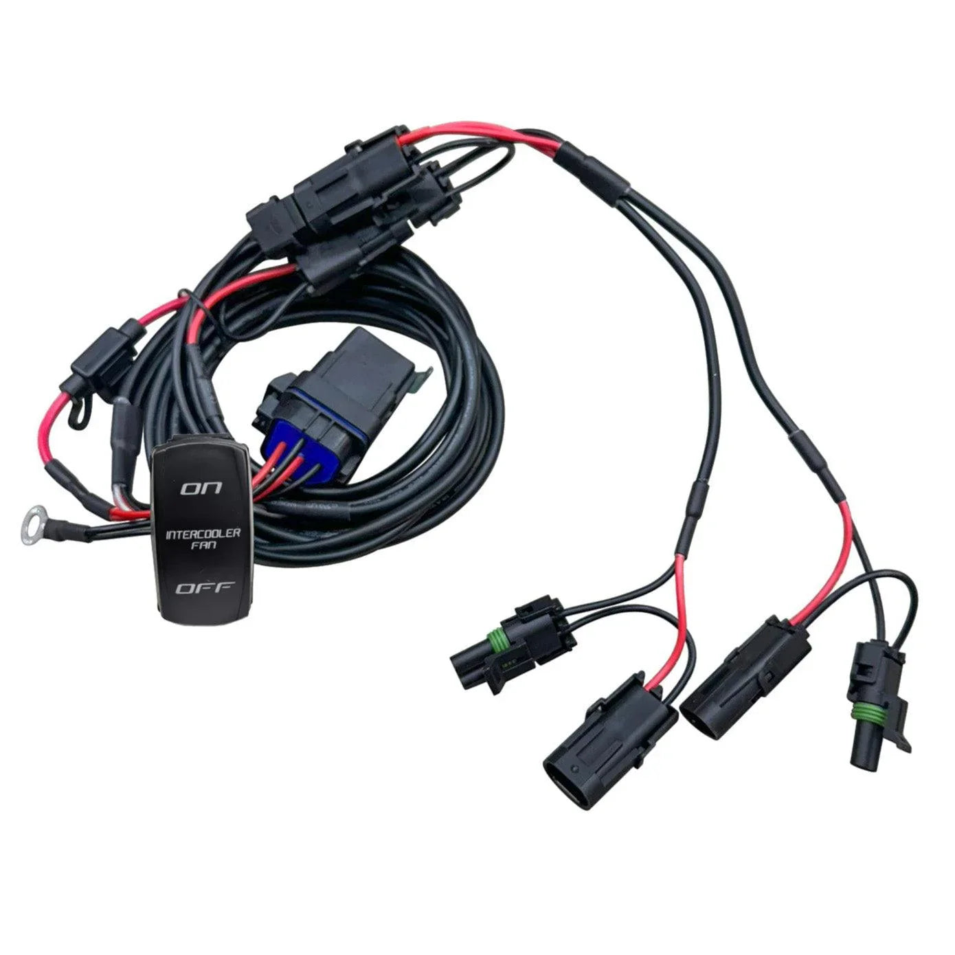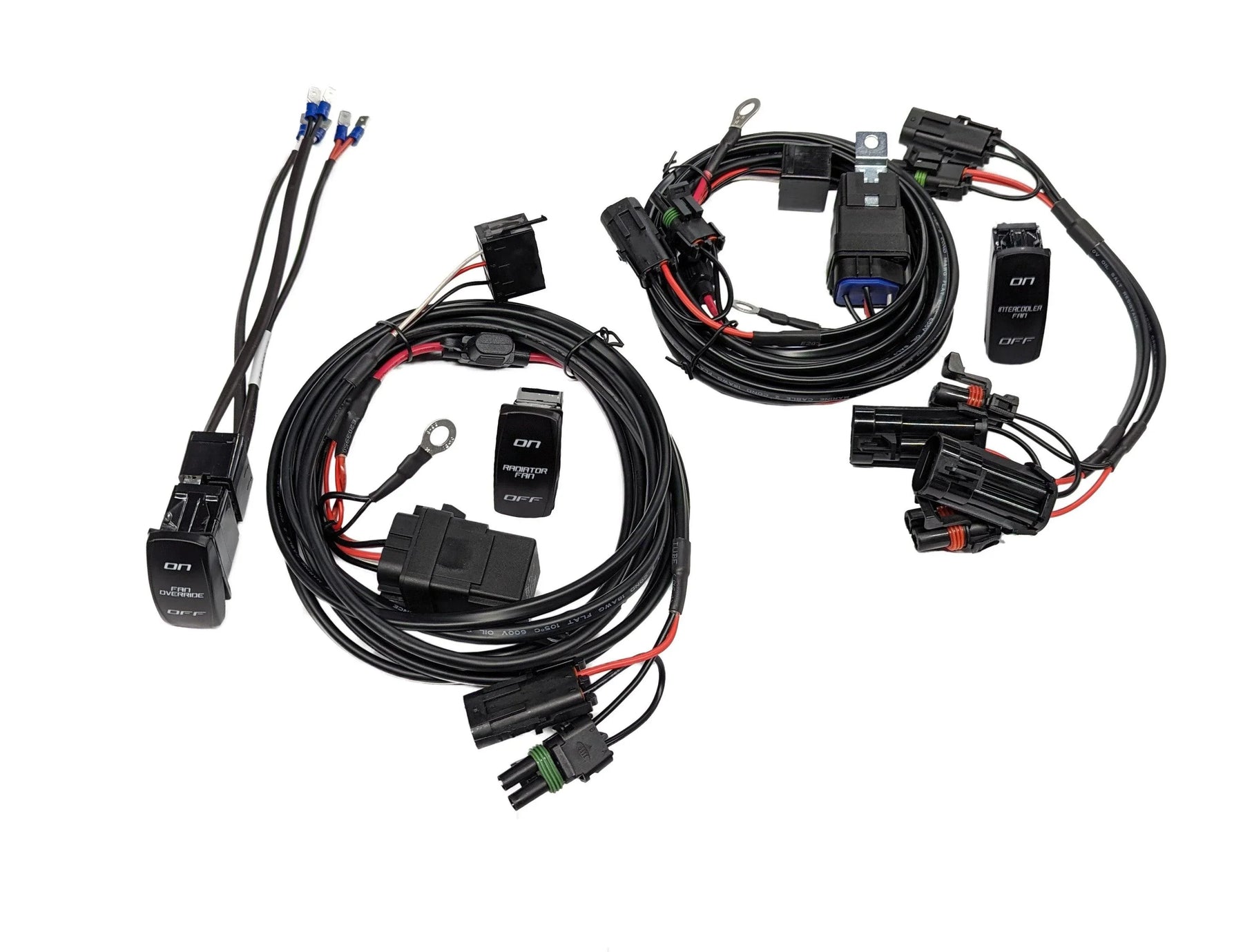 Our wiring kits are easy to install, plug directly to the factory buss bar's, and include orange backlit toggles. If buying individual kits you will get a designated toggle for your kit. If buying BOTH kits at the same time you will get a 3rd toggle switch and wiring kit to power both intercooler AND radiator fans at the same time using one toggle but still receive each individual switch as well if you would like to operate them individually.