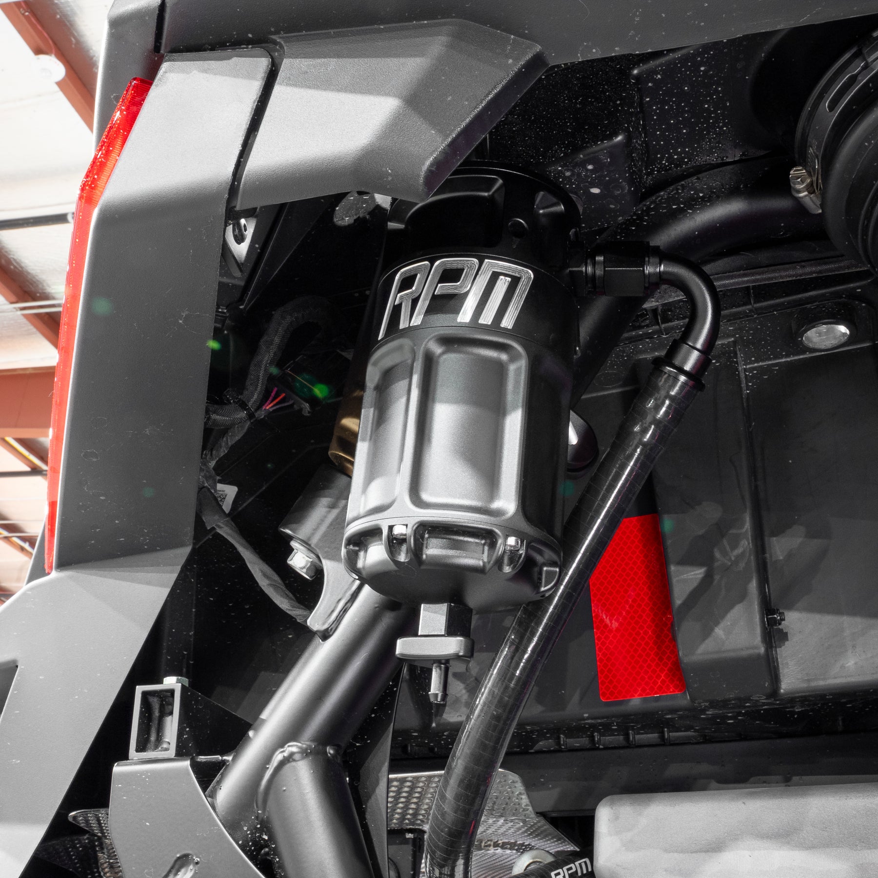 The RPM SxS 4-Stage Catch Can is the most advanced oil catch can ever built for serious side-by-side performance.