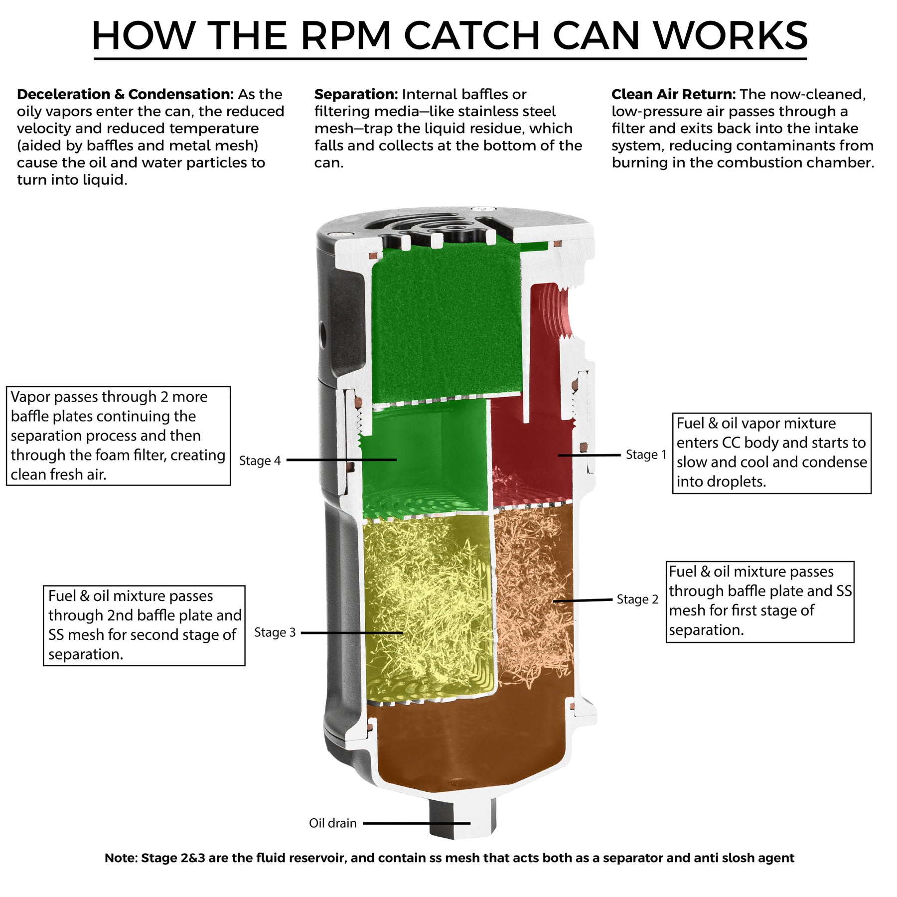 If you’re tired of basic catch cans that slosh, spill, or underperform when you’re actually pushing your machine, step up to the RPM 4-Stage. Engineered for real world SxS abuse and built to outperform the competition.