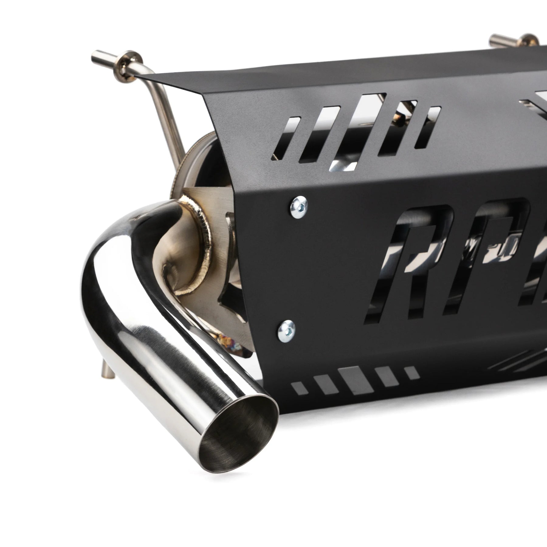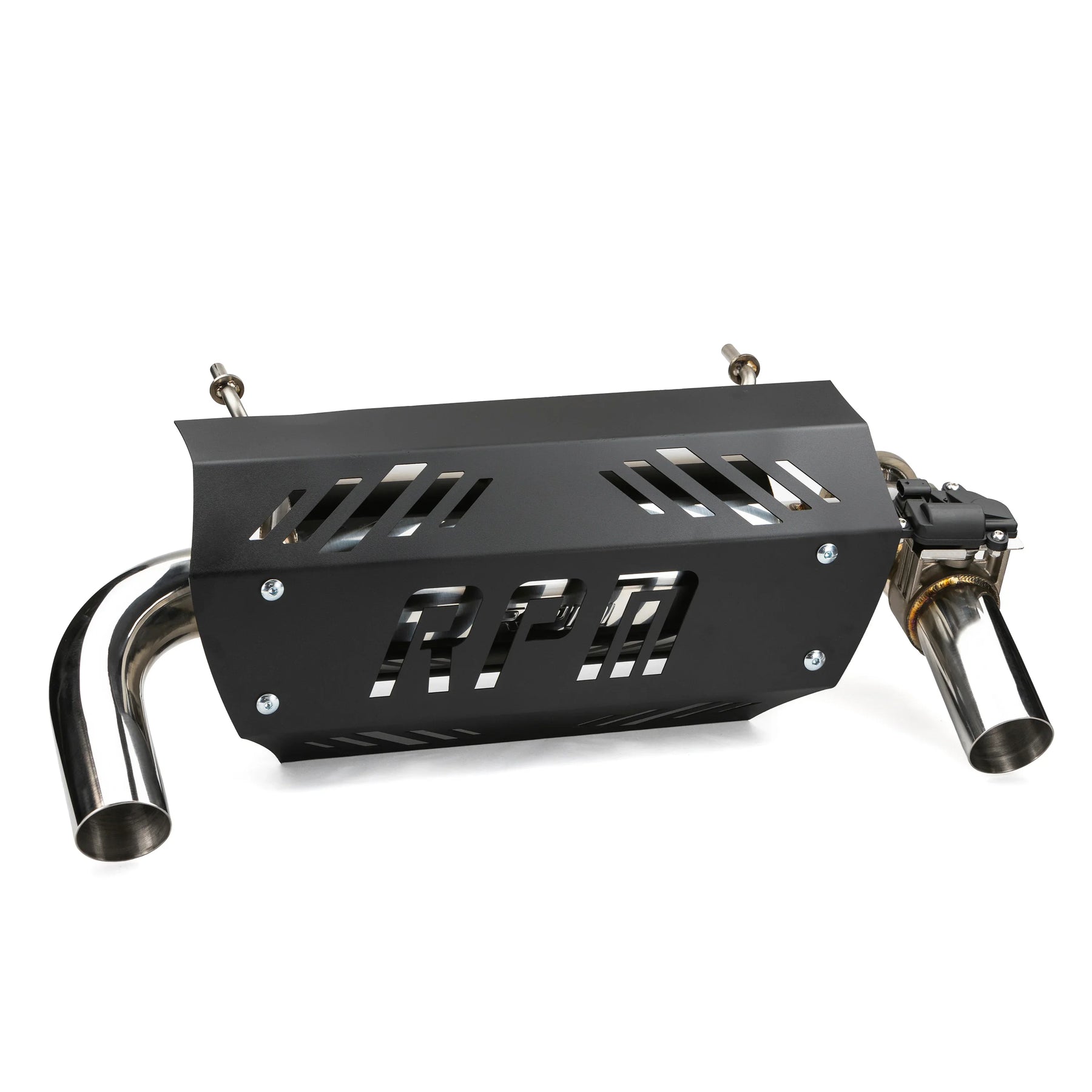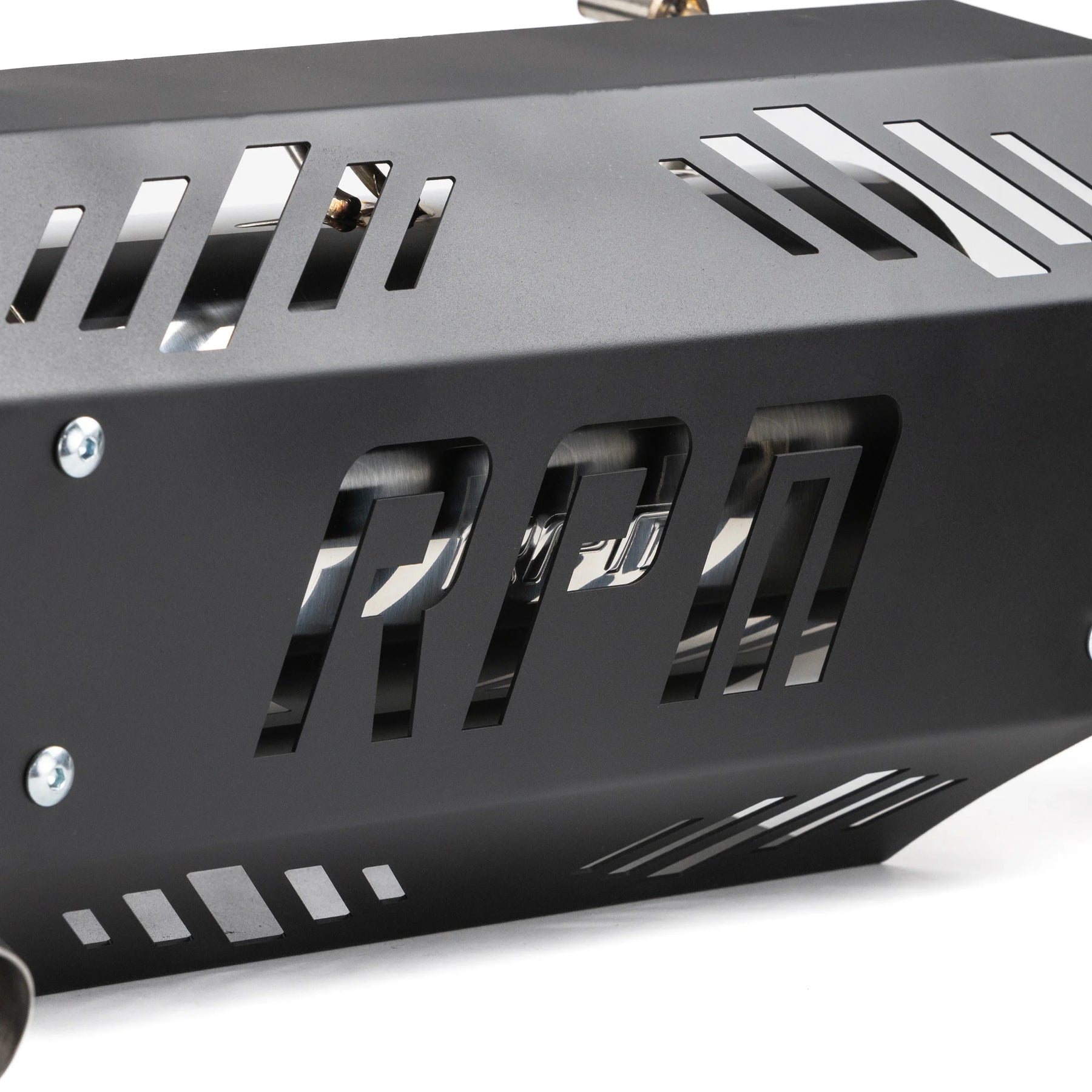 Want to be able to control the way your RZR sounds at the flip of a switch?! The trademarked RPM SxS E-Valve system can do just that! Sport sound when closed, turbo whistle and roar when open! We incorporated are popular catless Sport Muffler system into this muffler body and added a 2nd 2.5" tip that is at the end of the factory mid pipe allowing for the absolute most free flowing exhaust path when opened. When the valve is closed you will see a minimum of 3hp gain and 7hp and +500 RPM when open! This muffler bolts directly to the factory, or any RPM Mid Pipe. It includes a new muffler gasket AND hardware. Your choice of RPM Logo back plate colors including raw finish for those planning a custom color.